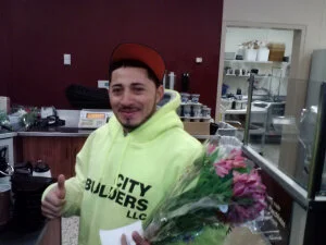 I think my focus is changing. I am not going to primarily take the bouquets to seniors. I am having so much fun just taking them wherever my heart leads me. To people in a restaurant, along the street, at a train station, at WAWA or Starbucks. It seems that the surprise of flowers – just putting smiles on strangers’ faces anywhere at all – is what the flowers are supposed to do. Random acts of flowering! Oh such fun.