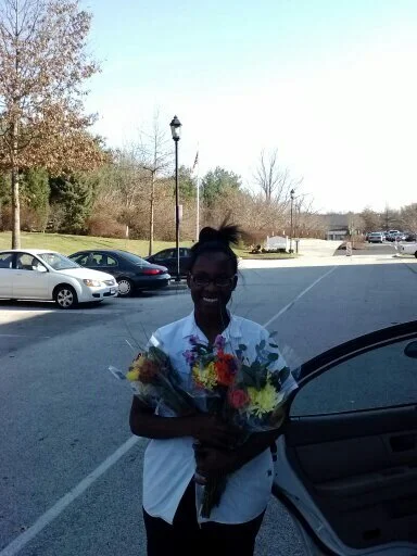 Flowers made the employees smile too! This young lady has lots of residents to give the flowers to.